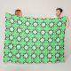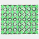Green towel set featuring a repeating geometric pattern of black and white shapes on a solid green background. Includes hanging and folded views.