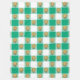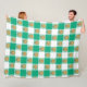 Adorable, whimsical green and white gingham pattern blanket with cute yellow sunflowers with happy faces in each of the light green squares.