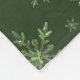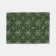 Hermosa manta de invierno con un patrón de copos de nieve sobre fondo verde oscuro. Cada copo de nieve es un collage hecho con ramas de pinos con trozos de nieve sobre ellos.