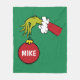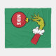 Get cozy this holiday season with a touch of Grinchy mischief with this fun personalized fleece blanket! The vibrant green blanket features a classic illustration of the Grinch's fuzzy green hand, clad in a red and white Santa sleeve, as he "steals" a shiny red Christmas ornament. The ornament is prominently customizable with a name in bold white letters, making this a unique and festive gift. Perfect for snuggling up by the fire, watching holiday movies, or adding a playful, nostalgic touch to your Christmas decor, this blanket is ideal for any fan of Dr. Seuss's "How the Grinch Stole Christmas."