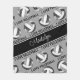 Esta bonita manta para chicas con temática de voleibol presenta la imagen realista de un voleibol que tiene paneles negros, grises y blancos con un ángulo con la frase de letra deportiva "Me encanta el voleibol" en negro que se extiende entre las hileras anglonizadas de bolas de voleibol - los paneles negros y grises de las bolas se combinan con un patrón de kaleidoscópico giratorio para una apariencia texturizada - nombre en un sofisticado tipo de letra manuscrito en una banda de color negro de ancho completo y negro - fondo es gris personalizable - por katz_d_zynes