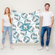 Esta manta de pulpa adorable con temática de voleibol presenta un patrón espejado de bolas de voleibol verde azuladas, grises y blancas con la frase "La cancha de voleibol es mi lugar feliz" en un tipo de letra casual escrita a mano junto con formas de corazón en verde azuladas que se extienden entre filas de bolas de voleibol - el nombre del atleta y el monograma se pueden personalizar en la gran pendiente del círculo dorsal - el fondo es personalizable blanco - reemplaza carta de varsity del jugador o número jersey - de katz_d_zynes
