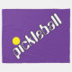 Este diseño deportivo y divertido presenta el texto PICKLEBALL en diagonal blanca retro, delineado en negro, con una linda bola de juego amarilla brillante para el punto en la "i" en la palabra, contra un fondo púrpura real.