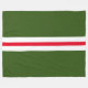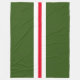 Este diseño audaz y deportivo presenta una franja blanca central amplia dividida con una franja roja brillante delgada, enmarcada con audacia en un vibrante fondo verde forestal.