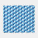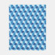 Manta de lazo en un clásico patrón de kimono japonés de grúas estilizadas, dispuestas en un patrón de hexágonos, en azul marino / índigo, azul medio y blanco, sobre un fondo azul cielo claro