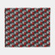 Funda de lazo en un clásico patrón de kimono japonés de grúas estilizadas, dispuestas en un patrón de hexágonos, en rojo profundo, gris claro y mediano, sobre un fondo negro