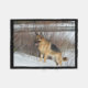 Alsatian negro y del moreno magnífico en el banco nevoso de un río