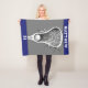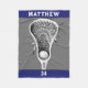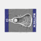 Decoración de lacrosse personalizada para jugador o entrenador con diseño de palo y bola sobre fondo de equipo azul. Para editar el texto del personalizar para agregar el nombre y el número de equipo del jugador más laxo.