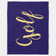 Este elegante diseño deportivo presenta un texto de guión de "golf" centrado en grandes dimensiones con un fondo negro moderno.