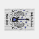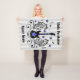 Diseño con alas de la guitarra de un eje de balancín dulce, con las notas musicales, y estrellas azules y remolinos. Mostrado aquí en una manta rayada gris y blanca pálida del bebé del fondo para personalizar.
