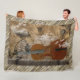 Un violoncelo viejo hermoso es el punto focal en la situación surrealista en esta manta acogedora del paño grueso y suave, que representa un manuscrito antiguo de gravedad-desafío del reloj de bolsillo, de la música de Bach, y las máquinas de vuelo improbables que se deslizan a través de las nubes, entre otros elementos inesperados. El cerco de la imagen principal es un marco de tablones resistidos, grisáceos, de madera.
