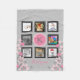 Cree el que está de una manta rosada de familia del recuerdo de la foto y gris única buena del cuarto de niños para la niña. El fondo gris claro con 8 enmarcó la forma cuadrada de las fotos una frontera alrededor de un monograma intrépido en el centro en un círculo rosado. El nombre está en escritura rosada elegante abajo. Lados más bajos tienen rosa y fronteras florales grises con los tulipanes de la primavera y las flores de la margarita. Añada 8 fotos personales de su. Modifique para requisitos particulares más lejos cambiando el color, el tamaño, el estilo, y/o el color de fondo de todas las fuentes. Perfeccione la idea femenina del regalo para las hembras de todas las edades o regalo de la ducha de la niña.