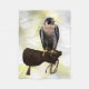 Ejemplo de un halcón de peregrino en el guante de un halconero