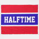 Este diseño deportivo presenta un fuerte audaz tipo de letra dentro de una banda azul brillante y amplia sobre un fondo rojo brillante con "HALFTIME" frente y centro. El color de banda y el color de fondo de este diseño se pueden personalizar/cambiar editando el diseño. El texto se puede personalizar.