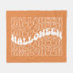 Este llamativo diseño de Halloween presenta una audaz y juguetona repetición de la palabra "HALLOWEEN" en un tipo de letra ondulado, de inspiración retro. El texto está organizado en varias capas, creando un patrón visualmente dinámico que atrae al visor. La palabra central se resalta en un naranja sólido y vibrante, destacándose del texto circundante, que está delineado en el mismo color. La tipografía ondulada añade un sentido de movimiento y energía, capturando perfectamente el espeluznante y divertido espíritu de Halloween.
