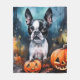 Manta Polar Halloween Boston Terrier con calabazas aterradoras