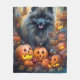 Manta Polar Halloween Keeshond con calabazas aterradoras