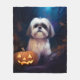 Manta Polar Halloween Shih Tzu con calabazas aterradoras