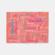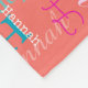 Texto tipográfico de nombre corto en naranja de coral claro rosa, verde azulado, rosa y blanco sobre una manta personalizado de color de fondo de coral. El color de fondo se puede cambiar si es necesario. Divertido texto gráfico personalizado manta personalizada. Ideal para el coche, acampando para las noches de invierno o excursiones. Personaliza con tu propio nombre corto, actualmente dice Hannah. Para obtener ayuda con la personalización y otras longitudes de nombres, por favor contacte conmigo. © Arte y diseño de Sarah Trett para www.mylittleeden.com