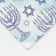 Blue and white Hanukkah menorah and Star of David doodle art style pattern is perfect for a seasonal home decor blanket. Pattern is AI-generated by IveyCottage.