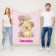 Sweet dreams little one! This cute fleece blanket makes the perfect 1st birthday gift for your litte girl. Featuring a kawaii-style design, it showcases a sweet puppy holding balloons alongside a birthday cake topped with a single candle. Personalize this cozy blanket with the birthday girl's name. Designed by Best Baby Gifts - given with love.