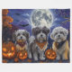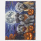 Unleash the spooky spirit with this eerie Halloween design featuring a pack of dogs under a dark, moonlit sky, surrounded by flying bats and glowing pumpkins. Perfect for those who love a touch of frightful fun with their furry friends!