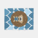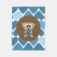 Corto erizo redondo cargando un corazón azul con los corazones azules en el fondo
