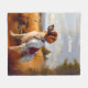 Se ve a un marrón y a un blanco escopeta inglesa parado en un campo dorado.
