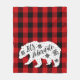 Esta divertida manta de lana de invierno incluye manojos de búfalo rojo, un oso blanco, copos de nieve y una tipografía elegante que dice: "Vamos a hibernar".
