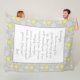 Esta manta con su moderna letra gris suave y borde floral amarillo, blanco y gris es una buena manera de decirle a tu hija cuánto la amas y qué bendición es para ti. A ella le encantará envolver tu amor y sentirá la calidez de tu presencia aunque no estés cerca de ella. El mensaje y los nombres son totalmente personalizables, por lo que puede elegir las palabras que desea usar para su(s) preciosa(s) hija(s). ¿Qué hija no quiere estar llena de confianza porque sabe que es profundamente amada y atesorada por su madre/padre? Obtén uno por cada una de tus hijas. ¡Realmente les encantará!