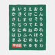 Clear hiragana chart featuring all basic syllables arranged in a clean grid for easy reading and memorization. Ideal for language learners, classrooms, study walls, and apparel; minimalist, high-contrast design that helps practice pronunciation and writing.