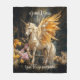Esta encantadora manta de lana cuenta con un unicornio dorado con grandes alas de plumas sobre un arroyo de bosques rodeado de orquídeas rosas y amarillas. Se ve un castillo de fantasía como telón de fondo, que añade un ambiente de cuento de hadas. Perfecto como un regalo para una guardería, cumpleaños o adolescente. Contáctame para que le ayude a agregar tu nombre o un mensaje especial para crear un regalo único y personal.