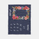 Una manta azul marino con un marco floral en el que puedes poner a tu bebé y tomar fotos de hitos mensuales. El marco floral está formado por rosas, margaritas y cristales de coral, de color rosa, naranja, blanco y caliente. Añada el nombre de su bebé en un precioso guión de caligrafía.