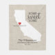 Muestra tu amor por California y tu ciudad natal con esta divertida manta de franela. Un diseño rústico y chic presenta una silueta del mapa del estado de CA, tipografía "Hogar Dulce Hogar", un corazón rojo que muestra dónde vives, todo sobre un fondo bronceado de arpillera/lino falso. Personaliza el texto con los apellidos de tu familia, monograma, ubicación de la ciudad, año, evento o elimínalo. (Para mover el corazón, haz clic en personalizar y arrastra el corazón y el texto de la ciudad|estado a la ubicación de tu ciudad natal, o usa las flechas para moverlo). Esto hace un regalo ideal para una inauguración, boda, aniversario, cumpleaños o cualquier ocasión. Consulta nuestros otros regalos del estado haciendo clic en el logotipo de Colorfulgalshop a continuación. (Si no ves tu estado, por favor envía un correo electrónico a