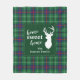 Cute hogar dulce hogar Navidades manta que puedes fácilmente personalizar haciendo clic en el botón "Personalizar", con silueta de ciervo y tartán Duncan clan en verde, y verificación violeta. Perfecto para sus acogedoras noches durante las vacaciones. Hace un gran regalo