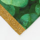 Una manta con un campo de hojas de trébol verdes. Estas lindas plantas tienen pequeñas gotitas de agua por todas partes que les dan un aspecto fresco en primavera. Los lados tienen un borde delgado con una textura purpurina de oro FAUX.