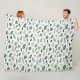 Manta Polar Hojas verdes y flores verdes sobre blanco