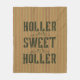 Una elegante manta de lana para los que viven la vida de campo en las afueras. Texto "Holler Sweet Holler" sobre el fondo de los tonos de tierra vintage