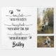 La manta de este flechazo de Mascota tributo personalizado incluye un conmovedor tributo a un querido mascota llamado Bailey. La manta está adornada con un mensaje de corazón que dice: 'Sonreíste con los ojos, riste con la cola y amaste con el corazón'. El texto está diseñado de forma elegante con elementos decorativos como huellas de pata y motivos cardíacos. Acompañando el texto hay dos preciadas fotografías: una que muestra a una persona jugando con un perro en una zona boscosa y otra que muestra a una persona sentada en el suelo con el perro. Esta manta sirve como un bigote hermoso y sentimental, celebrando la alegría y el amor que Bailey trajo a la vida de los que conocían al mascota. El diseño puede ser personalizado con el nombre de su propio mascota, fotos y mensajes de personalizado, lo que lo convierte en un tributo único y especial a su amigo.