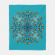 Una manta monstruo ocular con un ilustracion digital de una criatura extraña - mezcla de una planta simétrica con hojas y ojos amarillos sobre fondo azul.