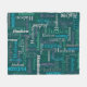 Texto tipográfico de nombre corto aqua, verde de bosque, gris, morado mudo sobre un diseño de manta personalizado de fondo verde oscuro. El color de fondo se puede cambiar si es necesario. Divertido texto gráfico personalizado manta personalizada. Ideal para el coche, acampando para las noches de invierno o excursiones. Personaliza tu propio nombre corto, actualmente lee Hudson para ayuda con personalización y otras longitudes de nombres por favor contáctame. © Arte y diseño de Sarah Trett para www.mylittleeden.com