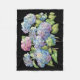 Si usted ama hydrangeas, usted disfrutará ciertamente del arte floral precioso en esta manta. Los hydrangeas florecientes se muestran en sombras deliciosas de rosado al azul a la lavanda. El fondo es negro pero puede ser cambiado modificando para requisitos particulares.