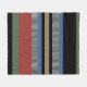 Un hermoso cobertizo con un patrón de rayas multicolores inspirado en un diseño escandinavo vintage. El diseño retro presenta rayas verticales en tonos rojos, azules, verdes y tostados, así como rayas horizontales en blanco y negro. Un hermoso regalo para quien ame los diseños retro escandinavos y acogedores.