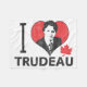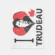 I corazón Trudeau. Amo a Justin Trudeau. Con una hoja de arce canadiense roja. Ministro liberal de Canadá el primer. La cara de Justin hecha como ilustracion gráfico y acabada en un grunge, mirada apenada.