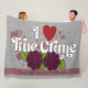 "I ❤️ True Crime!"–Quote. Cozy up to your favorite true crime show with this witty fleece blanket. The cute lettering, red splattering, and stylized black dahlia flower design make this a great choice for fans of unsolved crimes and mysteries. Create a custom gift when you personalize this throw blanket with your name.