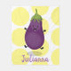 Añade algo de diversión en el jardín a tu día con esta adorable berenjena dibujada en un lindo estilo de ilustracion personalizado en un fondo de punto amarillo.