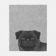 El original ilustracion personalizado de Destei de un adorable color negro de abrigo de raza Pug de la cabeza de perro cerda. El color de fondo es gris con una textura decorativa. La textura puede eliminarse y el color de fondo puede cambiarse a cualquier otro color, si así lo desea.