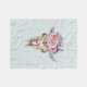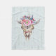 Ilustracion del toro esqueleto con flores y cuernos sobre fondo azul claro con flechas. plantilla de manta de lana de personalizable