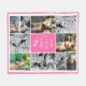 Recuerda a tu amado mascota con esta manta de collage de fotos a la que puedes añadir diez fotos. En el centro, "dejaste huellas de pata en nuestros corazones" con dos lindas huellas de pata, una que decora el corazón, en un simple diseño rosa y blanco.