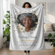Honor a cherished memory with this personalized memorial blanket, designed to bring warmth and comfort during moments of reflection. This soft fleece blanket features a beautiful floral wreath in muted sage, ivory, and blush tones encircling a custom photo of your loved one. Below the image, the text "In Loving Memory" is presented in a soft green script, accompanied by their name, dates, and a heartfelt quote. The design balances delicate botanical elements with a clean layout, making it a fitting tribute for a mother, grandmother, or any dearly missed loved one. Ideal for displaying at a memorial service, keeping on a favorite chair, or gifting to family members, this throw blends sentimental value with everyday comfort. The rustic grandmillennial style of the floral illustration adds a touch of timeless grace that complements both traditional and contemporary interiors. A meaningful keepsake to celebrate a beautiful life lived.